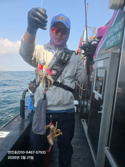 안녕하세요 만진2호 김슨장입니다.오늘 3월21일 토욜 쭈꾸미 6시간 조황입니다.많이 잡으신분이 46개, 다른분들 20~30수 이상 하셨고,손님괴기 아구,간재미,갑오징어 고루 고루얼굴 보여주었습니다.뒤쪽에서도 쌍걸이가 몇번 나왔지만, 배잡느라 사진이 없는점 양해부탁드립니다^^포항권 첨 오사분들과 초보조사님들이 찿아주셨는데많이 잡지못해 아쉬웠습니다.바람과 너울로 멀미 하신분들ㅇㅣ 계셨습니다~다들 고생하셨고, 열심히 해주셔서 감사합니다.다음에 또 뵙겠습니다~만진1호; 방어출조만진2호;쭈꾸미출조월(3/23); 모집중화(3/24); 모집중수(3/25); 모집중목(3/26); 모집중금(3/27); 모집중토(3/28); 모집중일(3/29); 모집중 *** 포항 만진호 예약 안내 ***예약문의 : > 만진2호 : 010-9467-5793 > 만진1호 : 010-3600-2677오시는길 : 경북 포항시 남구 구룡포읍 병포리 17-12홈페이지 : https://manjin.sunsang24.com/