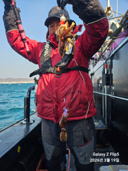 안녕하세요 만진2호 김슨장입니다 3월19일 목욜 11명 조황입니다.많이 잡으신분이 45개, 43개 하셨습니다.갑오징어도 3마리 나와주었습니다.예보랑 다르게 바람도 많이 불고 힘든상황에서 찿아주신분들 고생많으셨습니다.금(3/20) ;모집중 *** 포항 만진호 예약 안내 ***예약문의 : > 만진2호 : 010-9467-5793 > 만진1호 : 010-3600-2677오시는길 : 경북 포항시 남구 구룡포읍 병포리 17-12홈페이지 : https://manjin.sunsang24.com/