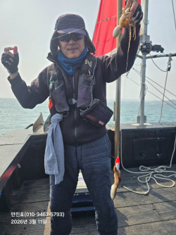 안녕하세요 만진2호 김슨장입니다.3월11일 수요일 6시간 쭈꾸미 조황입니다.많이 잡으신분이 58개,53개,48개 잡으셨습니다. 다른분들도 먹을만치 잡으셨습니다.손님괴기 아구,간재미