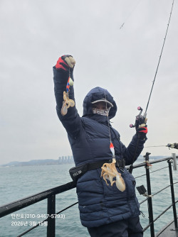 만진2호 김슨장입니다.오늘(3/18) 수욜 비예보가 잡혀 기상악화로 휴항했더니,아니나 다를까 이른새벽부터 비가 내려주네요~조업차 지인 찬스 사용해서 새벽일찍이 출항해서쭈꾸미 동태파악 하고 왔습니다^^사이즈 굿!~ 마릿수는 인당 20~25수 하고 2시간재미있게 놀다 입항했습니다~☆내일 정상 출조합니다~출항 08시입항 14시선비 9만(점심포함) * 점심 필요없으신분 김슨장한테로 전화주세요☆만진1호 내일 방어출조합니다출항 09시입항 13시선비 6만목(3/19); 모집중금(3/20); 모집중토(3/21); 마감; 협력선단 여유석 있음일(3/22); 마감; 협력선단 여유석 있음월(3/23); 모집중 *** 포항 만진호 예약 안내 ***예약문의 : > 만진2호 : 010-9467-5793 > 만진1호 : 010-3600-2677오시는길 : 경북 포항시 남구 구룡포읍 병포리 17-12홈페이지 : https://manjin.sunsang24.com/